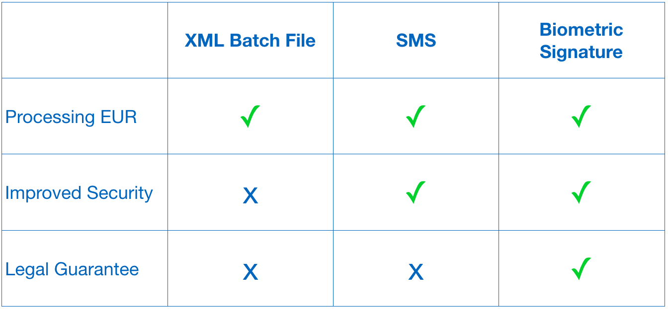 Get the customer to sign the SEPA mandate via either SMS Pincode validation or become compliant with our in-house developed biometric signature.
